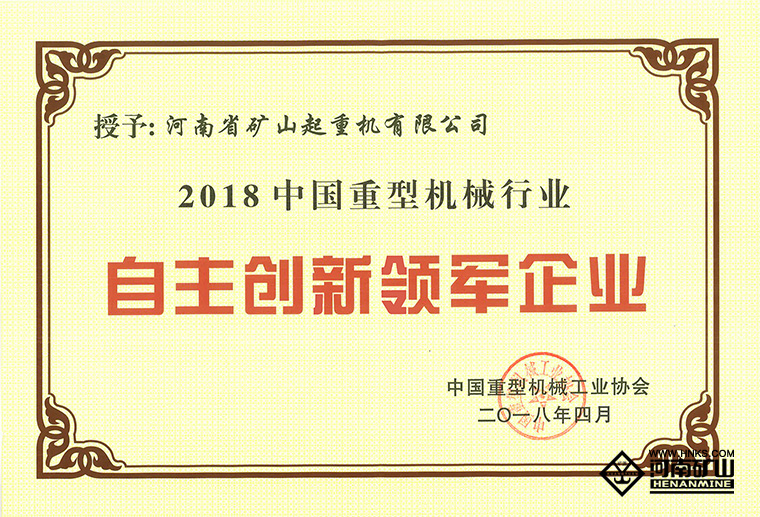 作為本次大會的重要內容,大會隆重表彰了2018中國重型機械行業(yè)“自主創(chuàng)新領軍企業(yè)”及“自主創(chuàng)新先進企業(yè)”。河南礦山榮獲“自主創(chuàng)新領軍企業(yè)”榮譽稱號。