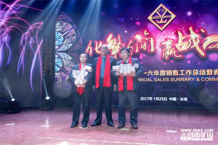 公司黨委書記崔培軍發(fā)表重要講話,他首先向蒞臨現(xiàn)場的各位領(lǐng)導(dǎo)及廣大業(yè)務(wù)精英們表示衷心的感謝和新春的祝愿,并指出公司能夠取得今日的成績,皆依賴于各級(jí)政府的大力支持、廣大業(yè)務(wù)精英的奔波拼搏和全體員工的團(tuán)結(jié)奮戰(zhàn)。他說,自己也是跑業(yè)務(wù)出身,深知跑業(yè)務(wù)的艱辛,在外受盡白眼,因?yàn)楣驹谏a(chǎn)進(jìn)度、核價(jià)報(bào)價(jià)、售后服務(wù)、手續(xù)辦理、拉車裝車等各個(gè)方面存在的不足,他鄭重向大家表示歉意。也正因?yàn)槿绱?,河南礦山將不遺余力地推行簡單化管理,把復(fù)雜的問題簡單化,把簡單的問題更簡單,努力為廣大業(yè)務(wù)經(jīng)理在各個(gè)方面提供便利。他提出,河南礦山的企業(yè)根基是孝道,一個(gè)人的做人根本也是孝心,什么都可以等,唯獨(dú)孝不能等。業(yè)務(wù)經(jīng)理們常年奔波在外,回家的時(shí)間很少,自己將代替大家盡孝心,明年繼續(xù)帶領(lǐng)大家的父母雙親外出旅游。他總結(jié)道,人生重要的是人品,中華民族的文化精髓是“厚德載物”,一個(gè)人要贏得別人尊重,核心的品質(zhì)就是做人厚道,希望大家永遠(yuǎn)記在心間。