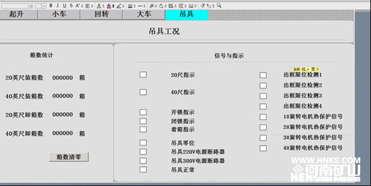 另外該起重機(jī)采用了先進(jìn)的自動控制系統(tǒng),實(shí)現(xiàn)了無人化操作功能,如自動尋箱、自動定位、遠(yuǎn)程監(jiān)控、數(shù)據(jù)實(shí)時傳輸?shù)?。起重機(jī)還配備有專用“黑匣子”,對各個部位故障快速診斷,能以直觀的方式讓操作者了解起重機(jī)的“健康情況”。為客戶管理貨場提供了解決方案和人性化的操作體驗(yàn),在幫助屏幕上附帶了一個專家系統(tǒng),使得整機(jī)反饋能縮小到具體的元件、聯(lián)鎖裝置及開關(guān),并為這一系列數(shù)據(jù)建立了一個數(shù)據(jù)庫,為解決問題提供幫助。