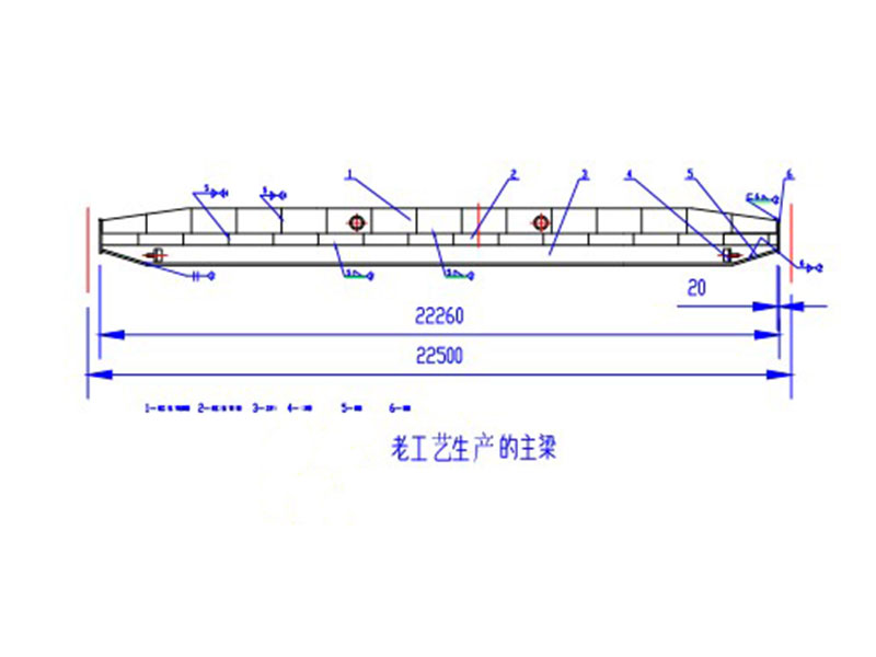 電動單梁起重機主梁原來主要采用U型槽加筋板焊接工字鋼,然后焊接兩側(cè)板再聯(lián)接端梁的方式制作。該工藝缺點是U型槽生產(chǎn)效率低、勞動強度大、焊接費用高、焊接工序耗時較長,焊接變形量大,焊接過程產(chǎn)生較多電焊煙塵,污染嚴重,在進行多段拼板、焊接、整形的過程中,焊接質(zhì)量難保證,時有主梁橫向焊縫產(chǎn)生裂紋缺痕。